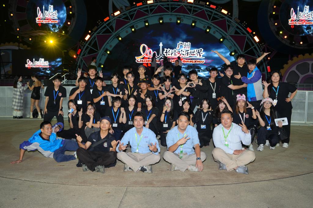 为深入推进“将舞台真场景转化为移动课堂,实现真实舞台与教学场景的深度融合,创新实践教学场景模式”的文旅演艺人才培养模式,广东省外语艺术职业学院演艺学院与广州长隆集团有限公司联合开展校企合作教学改革实践,进行生产性实践项目。2025年9月12日2024级舞台艺术设计与制作专业32名学生分岗进入长隆欢乐世界的演出现场,分别担任灯光调试与操作、扩声系统与调音、演出统筹与安全、演员维护与管理等一线岗位,在真实文旅项目中进行全流程训练,实现教学内容与岗位需求精准对接,促进教学目标与人才需求适配联通,促进了人才链、创新链、产业链深度融合。